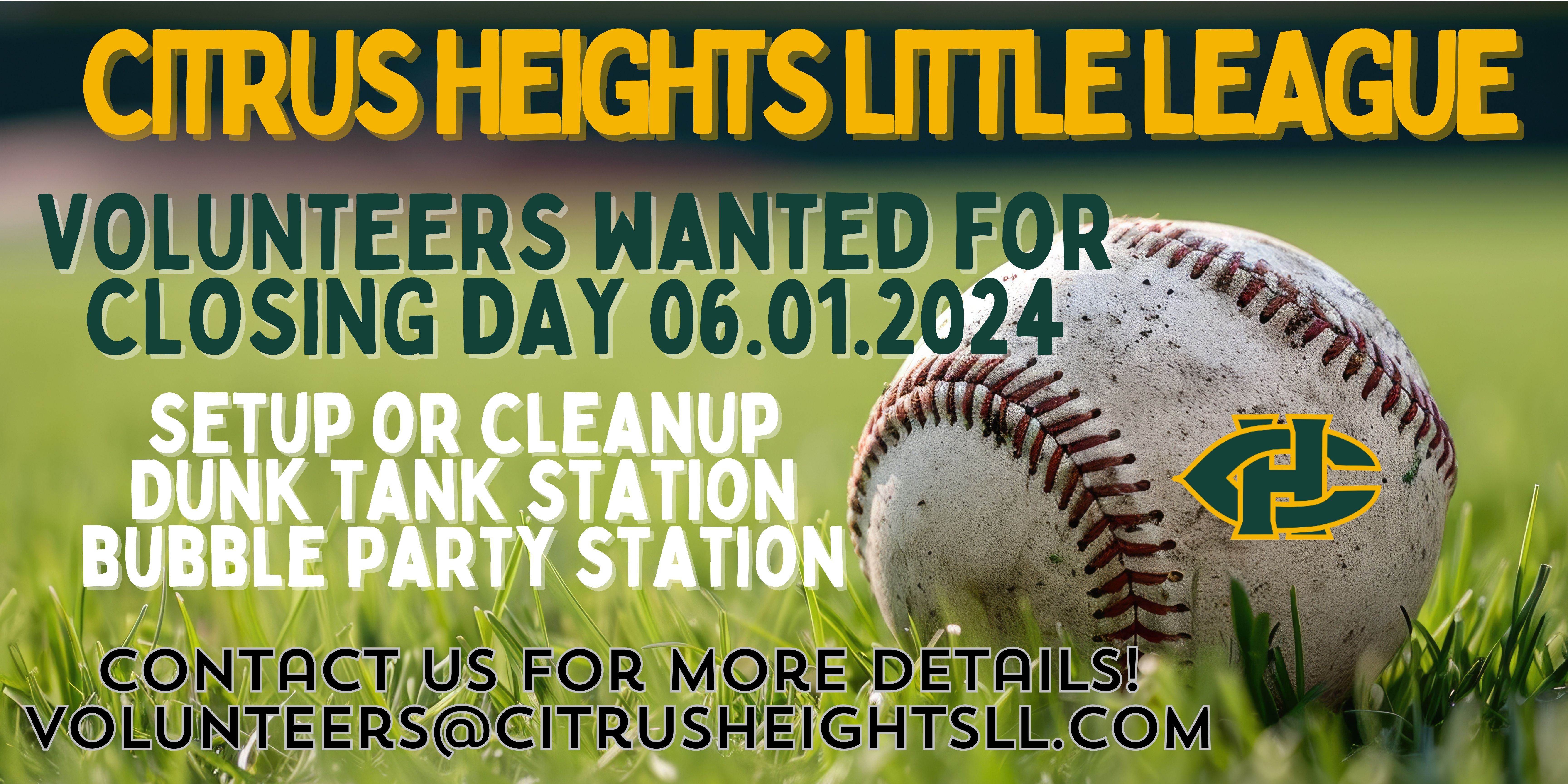 Join the Citrus Heights Little League as we celebrate the end of the Spring Season with our Closing Day on Saturday, June 1st!